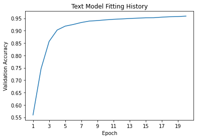 text_plot = plot_accuracies(text_history,"Text Model")